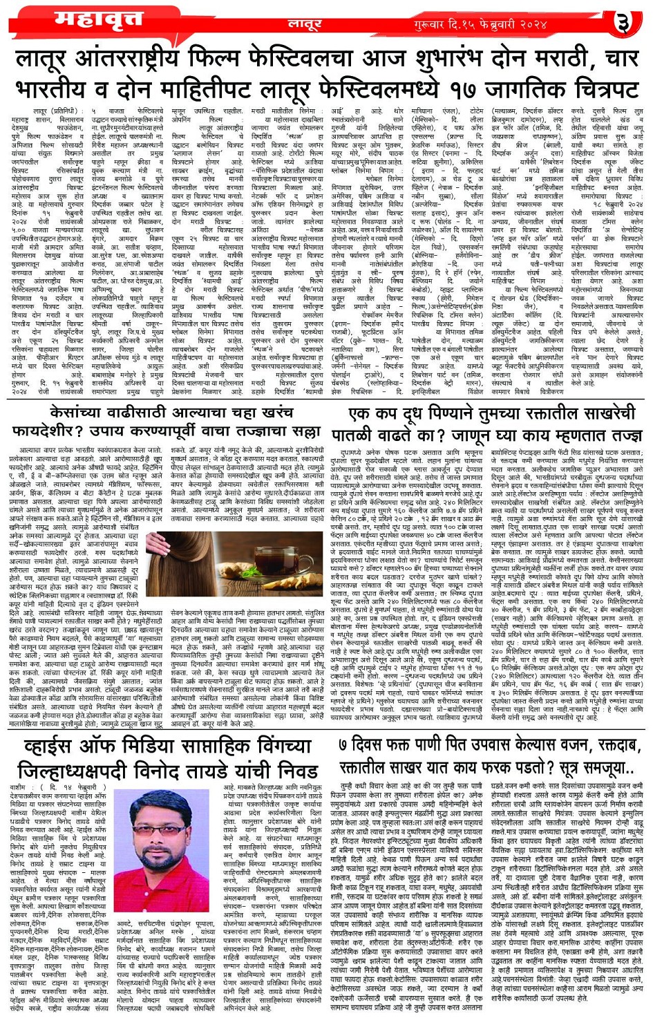Digital Edition of DAINIK MHAVRATT Page: 3 February 15, 2024 << First << 3 >> Last >> Page 1Page 2Page 3Page 4 × Digital Edition of DAINIK MHAVRATT Page 1Page 2Page 3Page 4 Full PDF << First << 3 >> Last >> Page 1Page 2Page 3Page 4 Page 3