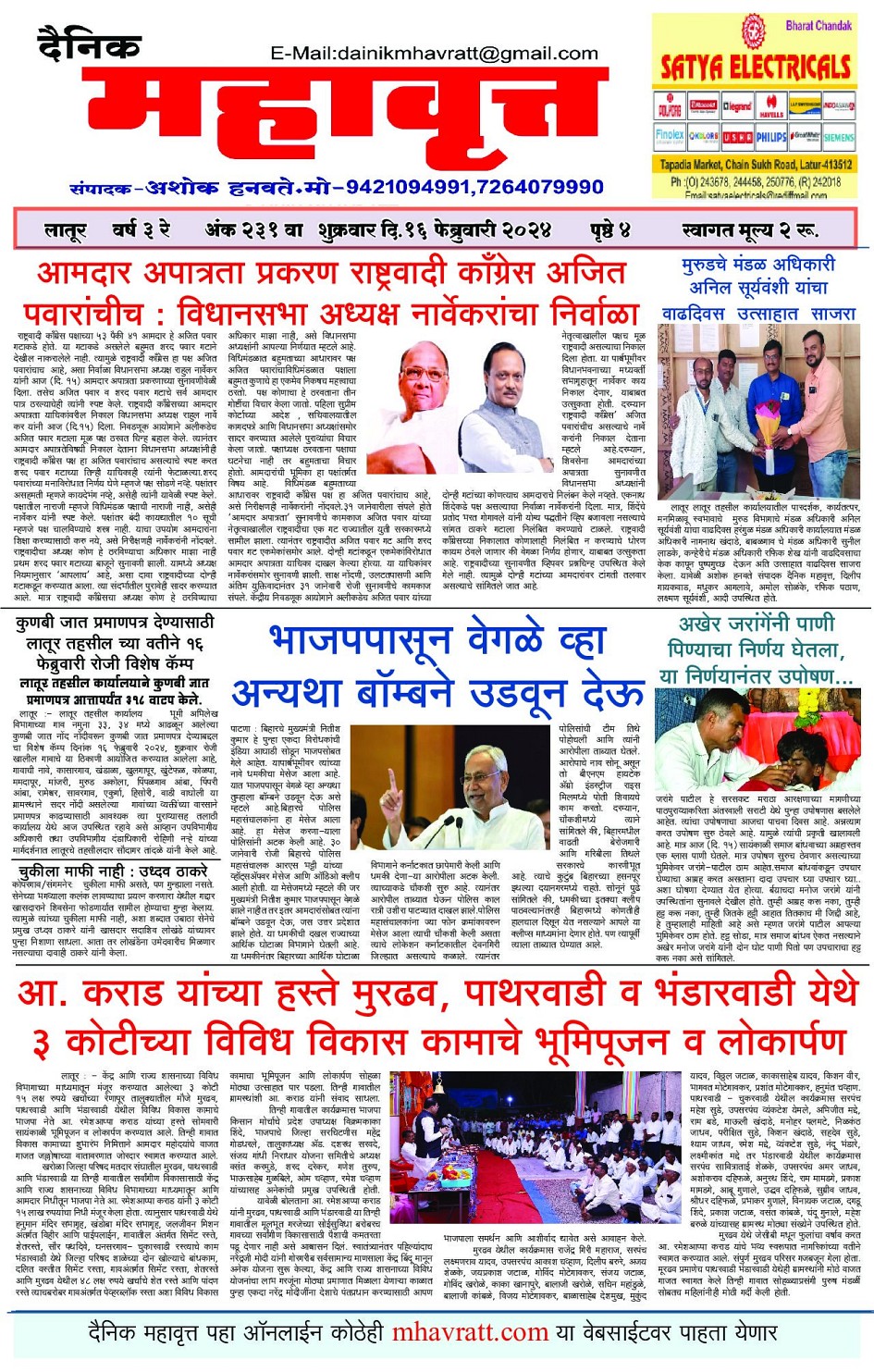 Digital Edition of DAINIK MHAVRATT February 16, 2024 << First << 1 >> Last >> Page 1Page 2Page 3Page 4 × Digital Edition of DAINIK MHAVRATT Page 1Page 2Page 3Page 4 Full PDF << First << 1 >> Last >> Page 1Page 2Page 3Page 4 Page 1
