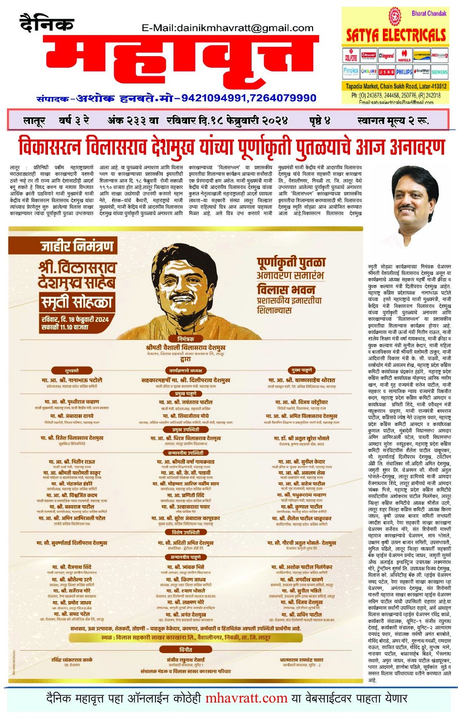 Digital Edition of DAINIK MHAVRATT February 18, 2024 << First << 1 >> Last >> Page 1Page 2Page 3Page 4 × Digital Edition of DAINIK MHAVRATT Page 1Page 2Page 3Page 4 Full PDF << First << 1 >> Last >> Page 1Page 2Page 3Page 4 Page 1
