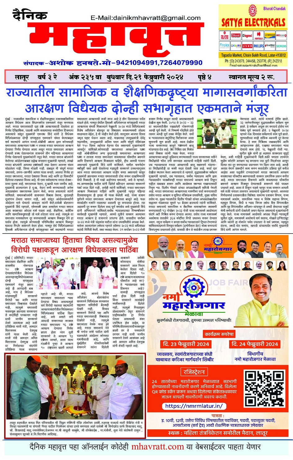 Digital Edition of DAINIK MHAVRATT February 21, 2024 << First << 1 >> Last >> Page 1Page 2Page 3Page 4 × Digital Edition of DAINIK MHAVRATT Page 1Page 2Page 3Page 4 Full PDF << First << 1 >> Last >> Page 1Page 2Page 3Page 4 Page 1