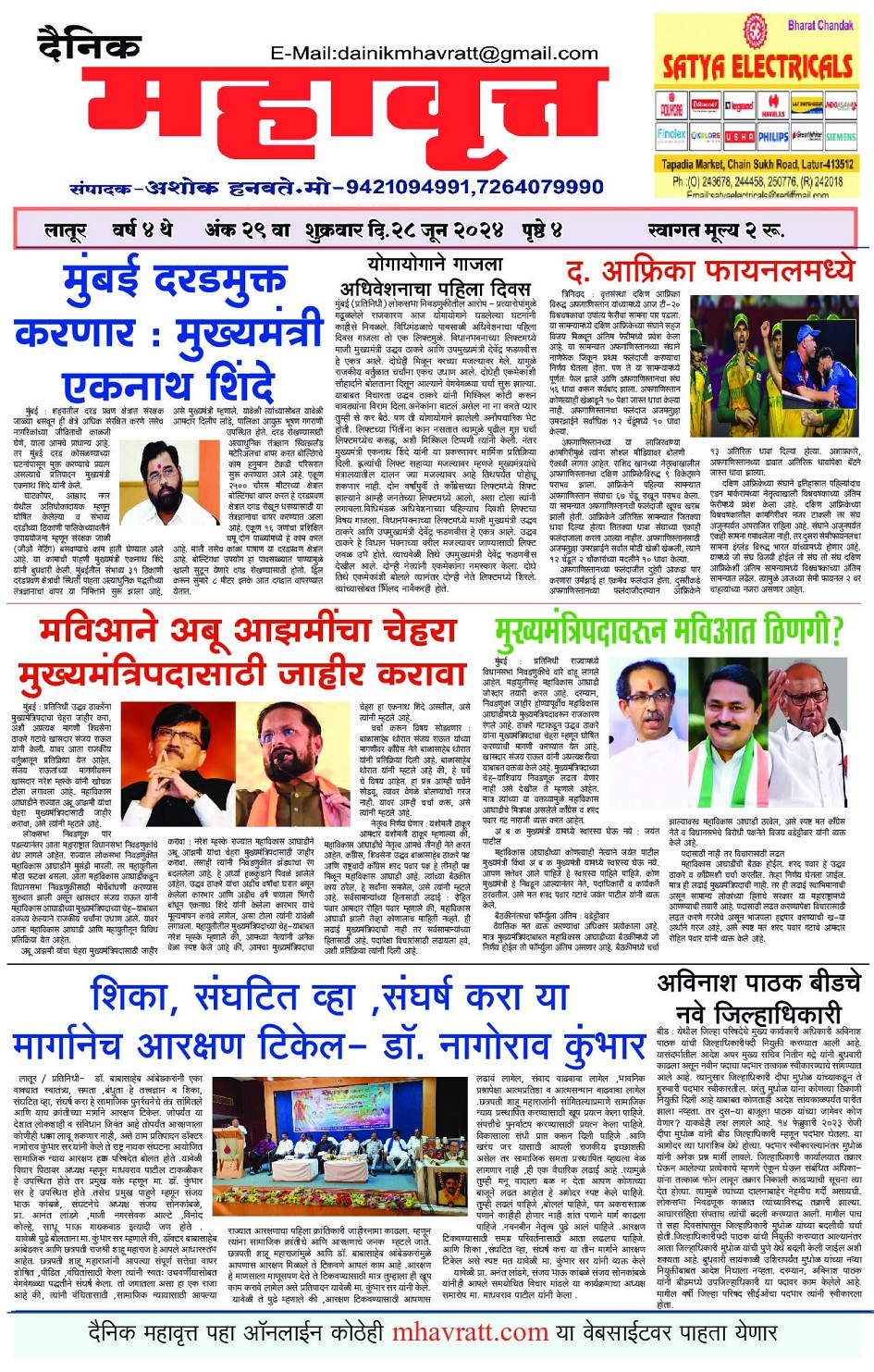 Digital Edition of DAINIK MHAVRATT June 28, 2024 << First << 1 >> Last >> Page 1Page 2Page 3Page 4 × Digital Edition of DAINIK MHAVRATT Page 1Page 2Page 3Page 4 Full PDF << First << 1 >> Last >> Page 1Page 2Page 3Page 4 Page 1