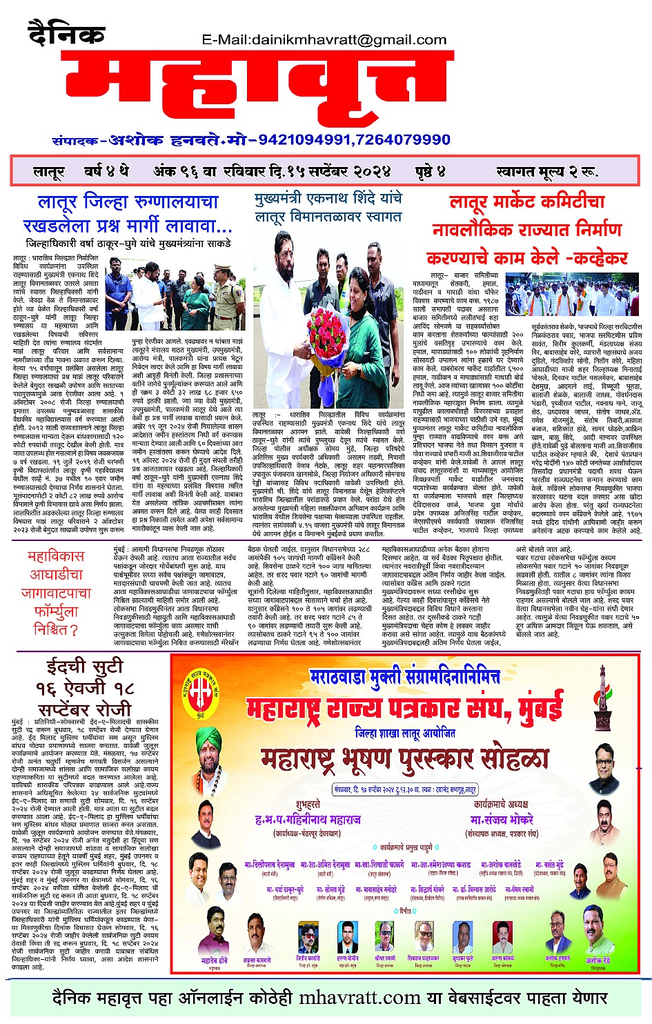 Digital Edition of DAINIK MHAVRATT September 15, 2024 << First << 1 >> Last >> Page 1Page 2Page 3Page 4 × Digital Edition of DAINIK MHAVRATT Page 1Page 2Page 3Page 4 Full PDF << First << 1 >> Last >> Page 1Page 2Page 3Page 4 Page 1