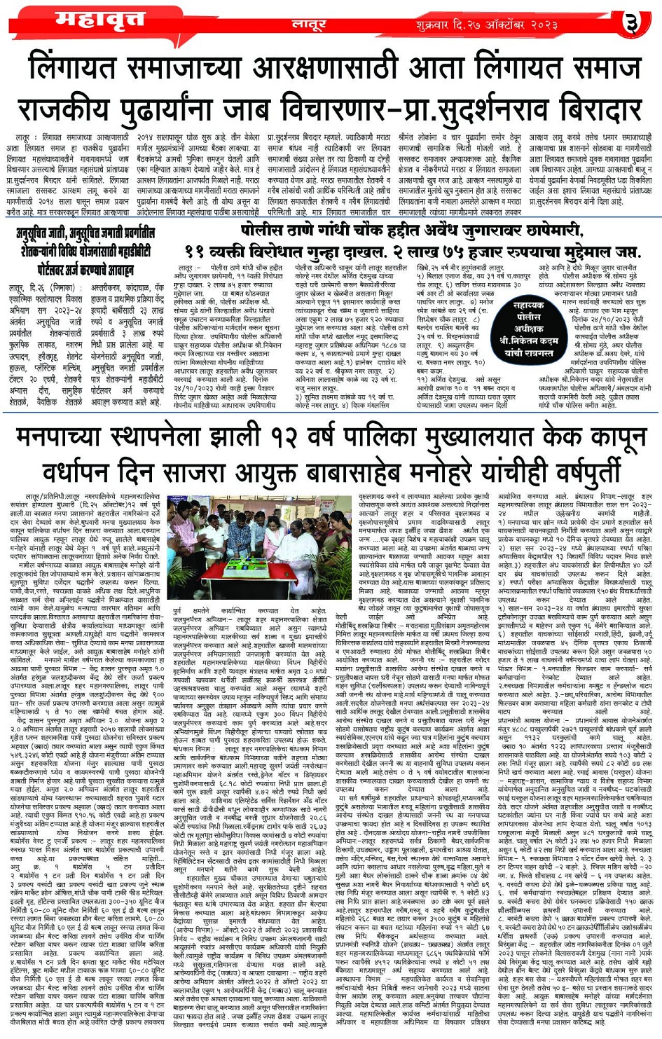 Digital Edition of DAINIK MHAVRATT Page: 3 October 27, 2023 << First << 3 >> Last >> Page 1Page 2Page 3Page 4 × Digital Edition of DAINIK MHAVRATT Page 1Page 2Page 3Page 4 Full PDF << First << 3 >> Last >> Page 1Page 2Page 3Page 4 Page 3
