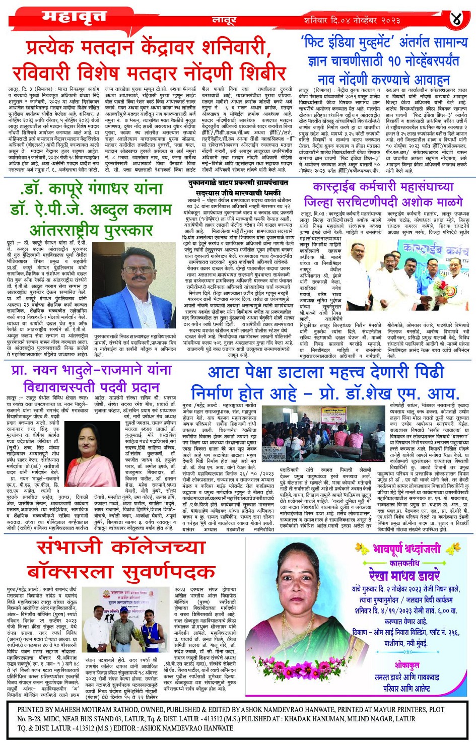 Digital Edition of DAINIK MHAVRATT Page: 4 November 04, 2023 << First << 4 >> Last >> Page 1Page 2Page 3Page 4 × Digital Edition of DAINIK MHAVRATT Page 1Page 2Page 3Page 4 Full PDF << First << 4 >> Last >> Page 1Page 2Page 3Page 4 Page 4