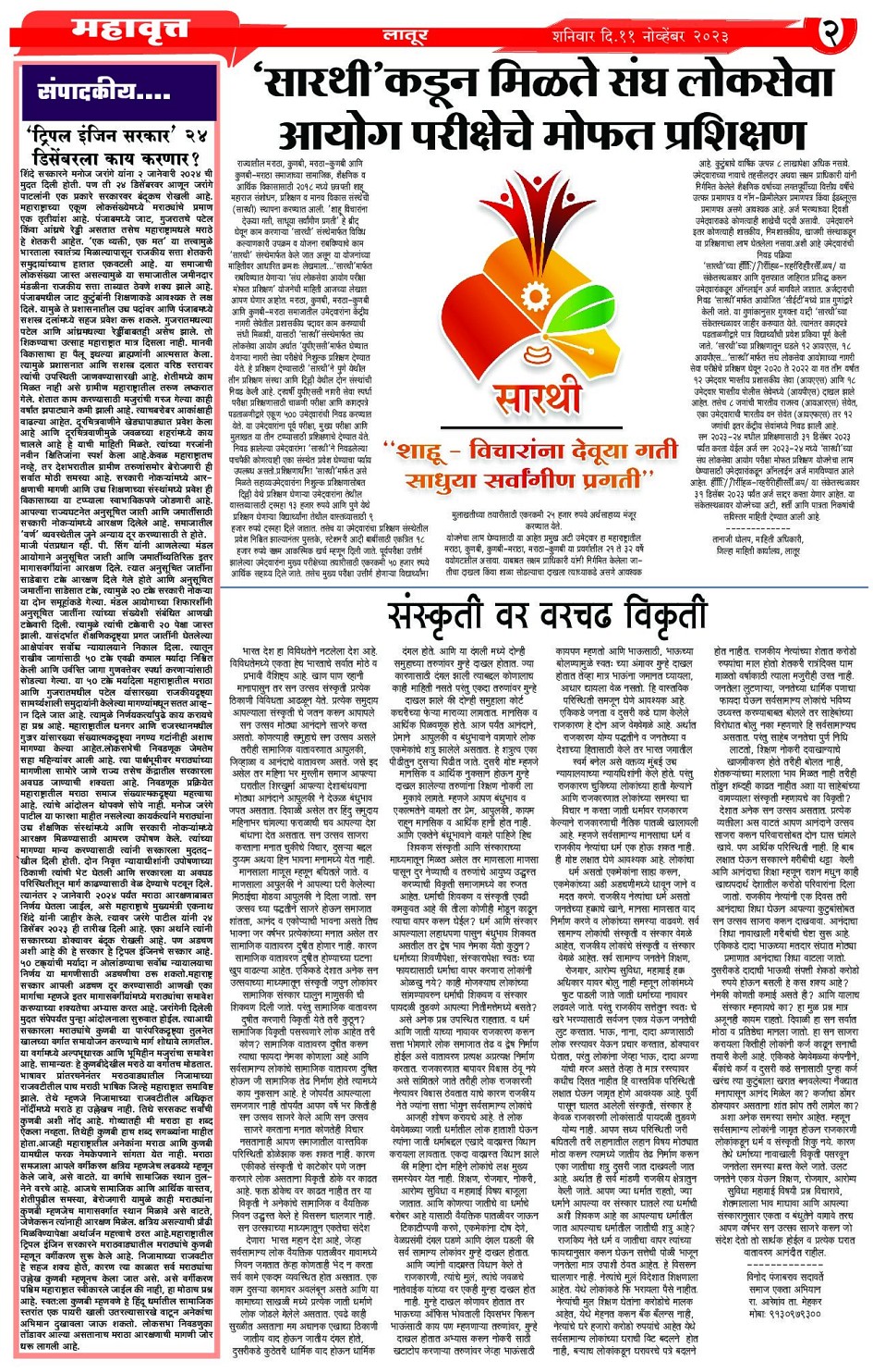 Digital Edition of DAINIK MHAVRATT Page: 2 November 11, 2023 << First << 2 >> Last >> Page 1Page 2Page 3Page 4 × Digital Edition of DAINIK MHAVRATT Page 1Page 2Page 3Page 4 Full PDF << First << 2 >> Last >> Page 1Page 2Page 3Page 4 Page 2